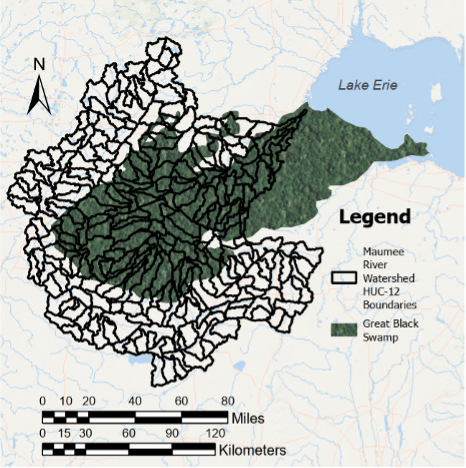 Fig. 1 The Maumee River Watershed, United States, with the historical extent of the Great Black Swamp, adapted from “Great Black Swamp estimated boundary layer” by Hohman and Messina (2019) and from “Watershed Boundary Dataset” by the USGS (2023).